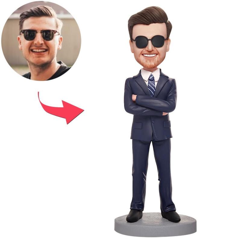 Blue Suit Businessman Custom Bobblehead With Engraved Text