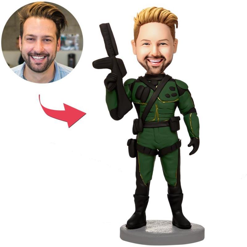 Holding A Gun Male Custom Bobblehead With Engraved Text