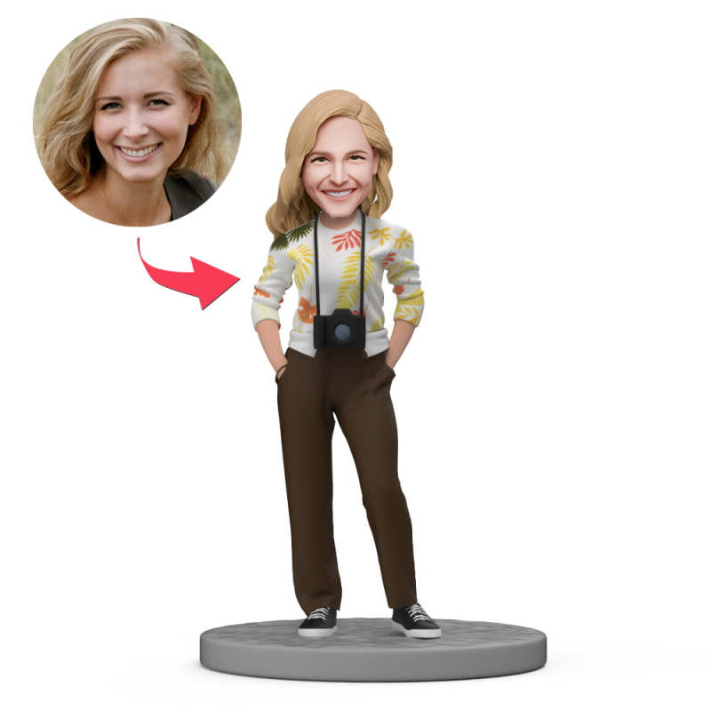Custom Bobbleheads with Engraved Text Casual Women with Camera