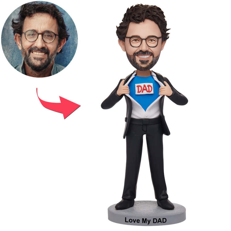 Father's Day Gifts Custom Dad Wear Black Suit and Blue Shirt Bobbleheads With Engraved Text
