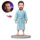 Custom Man in Light Blue Bathrobe Custom Bobbleheads With Engraved Text Gift