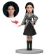 Custom Woman in Black and White Striped Suit Custom Bobbleheads With Engraved Text Gift