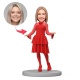 Custom Woman in Red Dress and Boots Custom Bobbleheads With Engraved Text Gift