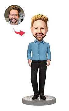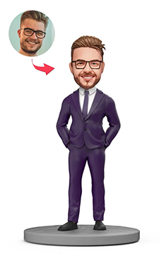 Businessman Blue Suit Custom Bobbleheads With Engraved Text -