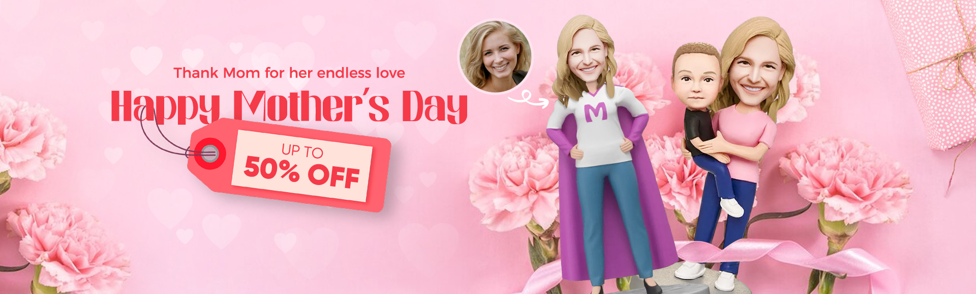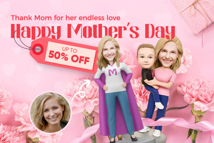 Mother's Day Gift Custom Bobblehead - Customize Personalized Bobblehead Gifts for Young Mom -