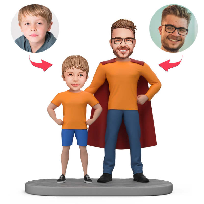 Custom Bobblehead Dad & Child with Engraved Text for Dad