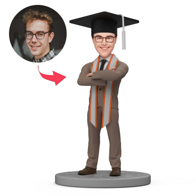 Custom Bobbleheads for Graduation Male in Brown Suit with Bachelor Cap