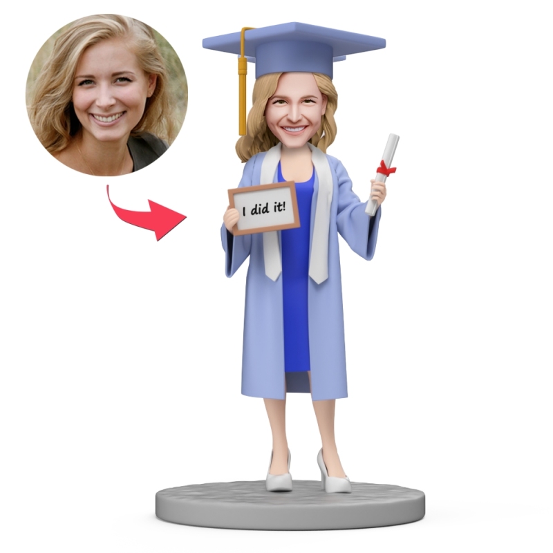 Education Graduate Blue Gown Custom Bobblehead with Engraved Text