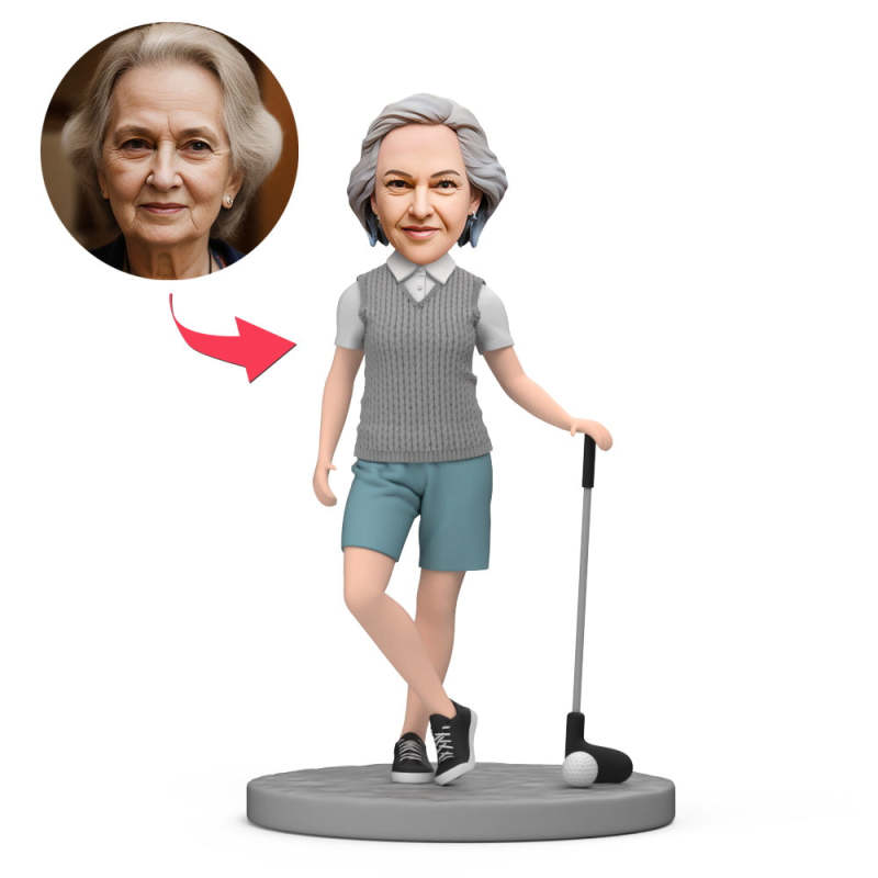 Grandma Play Golf Custom Bobblehead with Engraved Text