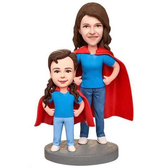 Super Mother and Daughter Custom Bobblehead with Engraved Text