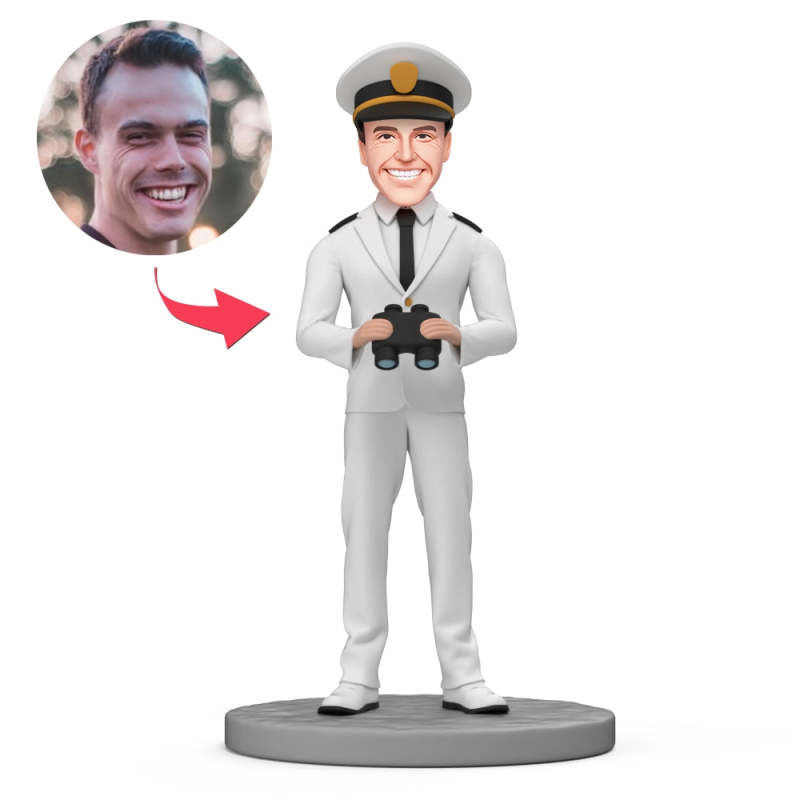 Navy Commander Hold Binoculars Custom Bobblehead with Engraved Text