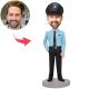 Policeman In Blue Police Uniform Custom Bobblehead With Engraved Text