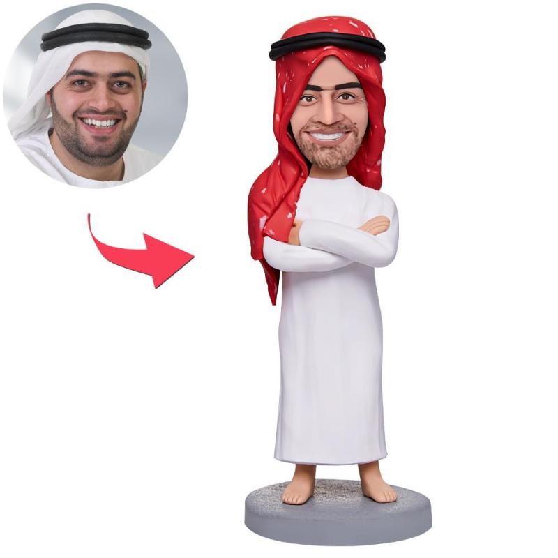 Red Turban Arabs Custom Bobblehead With Engraved Text