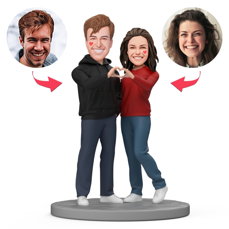 Valentine's Day Gifts Couple Wear Black and Red Clothes Custom Bobblehead with Engraved Text